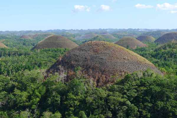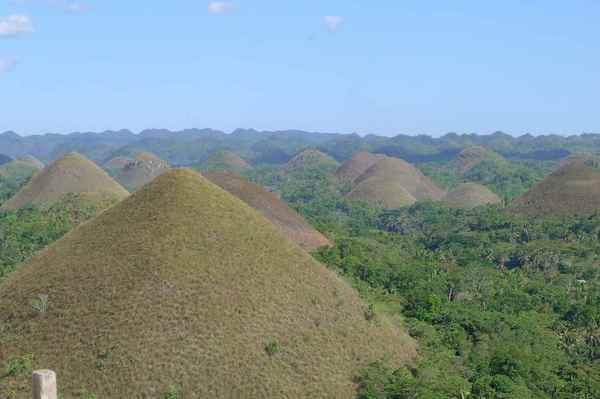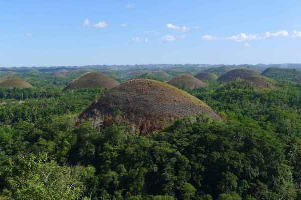 薄荷島上最有名景點 - 巧克力山,這是菲律賓境內除了馬熔火山 ( Mayon Volcano) 之外最值得一遊的天然景觀。1,268 個於數佰萬年前,由海底珊瑚積聚而成之小山丘,每逢雨季 ,山上滿布綠草,旱季時則變成一片茶色,所以命名為巧克力山。