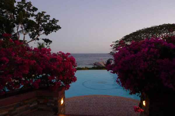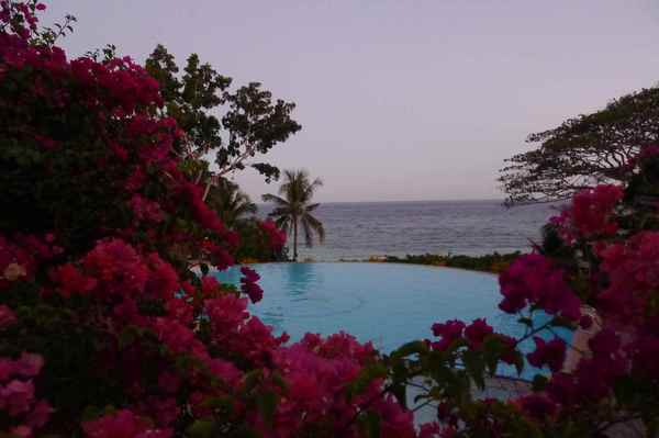 戶外的海天連成一線的泳池