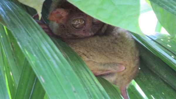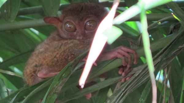 | 眼鏡猴全身赤色多毛,只有四吋半,其尾巴長十吋,性情溫馴,被認為是全世界最小的猴種。眼鏡猴為受保護的動物,並且禁止獵捕。 |