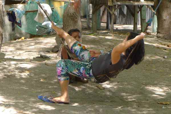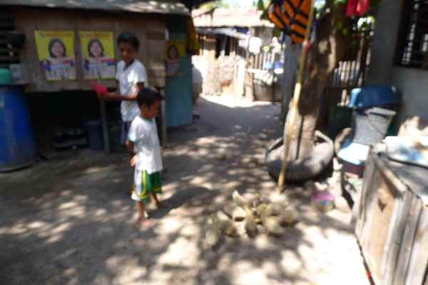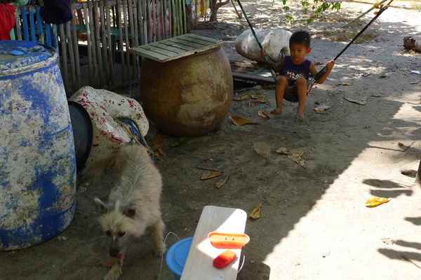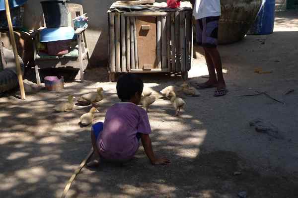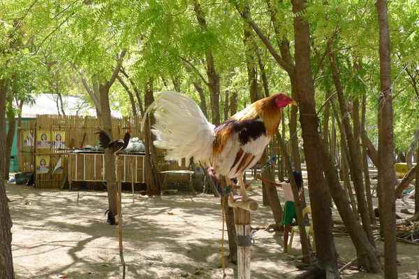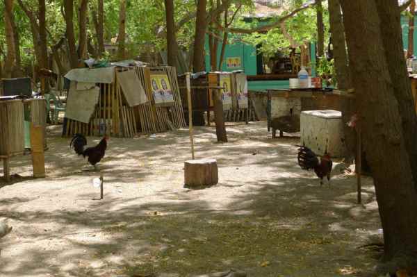 居民閒來無事的消遣活動就是鬥雞,所以家家戶戶都養鬥雞,用繩子綁在門前,