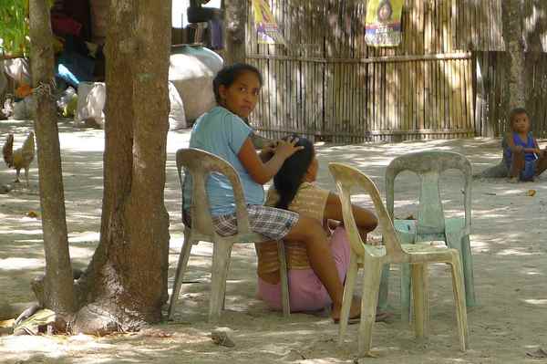 而婦女們就在屋前坐著聊天,大家都很悠閒的感覺。
