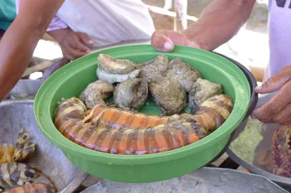 客人買好海鮮後會由攤販代為料理,可以指定要蒸的、烤的等烹調方式,也可以讓攤販自行決定。