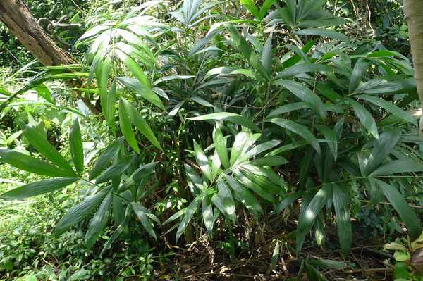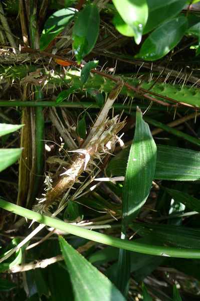黃藤分布於台灣低中海拔的森林中,莖可長達200公尺,葉鞘上布滿3~4公分長刺。葉背上的鉤刺尤其重要,爬藤植物不需長太粗,只要勾住其他植物往上,在很短時間就可達到跟大樹一樣的高度,所以是很有智慧的生長方式。藤類植物對森林很重要,它將樹與樹編織在一起,可以讓森林更加穩固,防止外力(如大雨、颱風、外來動植物等)的干擾。我們的祖先很早就懂得利用黃藤,今日黃藤心更成為健康美食,可惜野外的黃藤數量已經不多,需要靠人工刻意栽培。