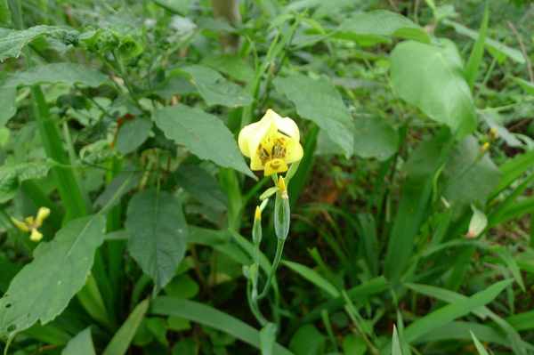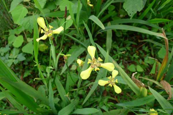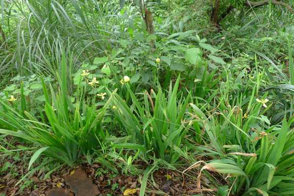 黃扇鳶尾花開的時間不到一日即謝 若置於日光直射處 約近中午時分即委靡不振 ... 苞片3枚 呈外翻狀 基部具褐色斑塊 後段同為褐色斑紋 內花被3枚內卷 金黃色或......