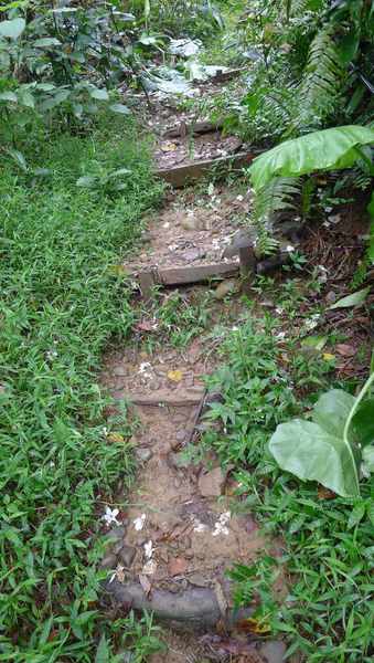 泥土已被雨水沖蝕 。 坡度陡峭