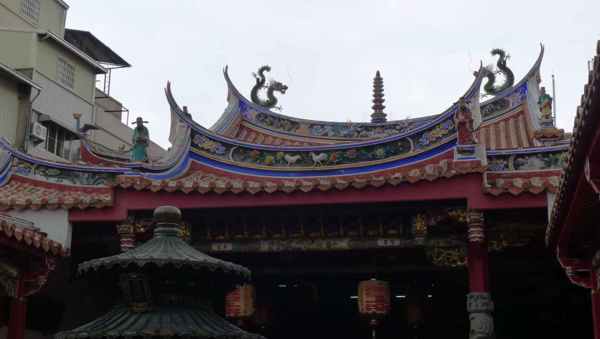 建築特色:三川殿使用牌樓式重簷,斗拱使用象頭造形,廊牆施磚刻及交跤陶。