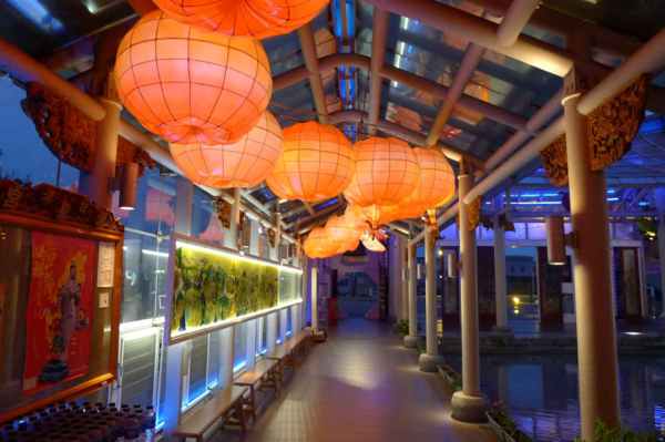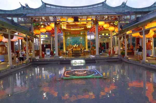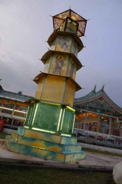 玻璃廟以筏式水泥基座結合鋼骨作主結構,而後運用高科技隔熱安全玻璃作屋面及外牆,進而以木雕、石雕精品,融合彩繪窯燒、熱塑、堆疊玻璃等材料執行內裝修飾,展現台灣建築、工藝、科技和藝術的層次等級,歷經了6年打造,耗資了1.2億的新台幣,廟內供奉主神為琉璃媽祖,為全球第一座的玻璃媽祖廟。