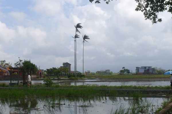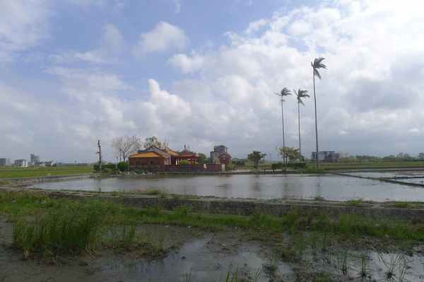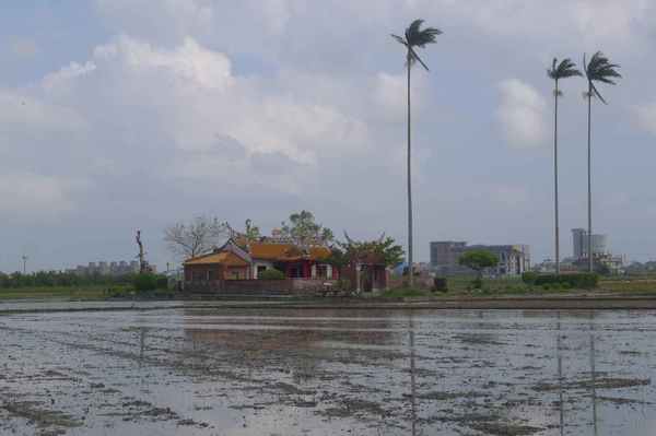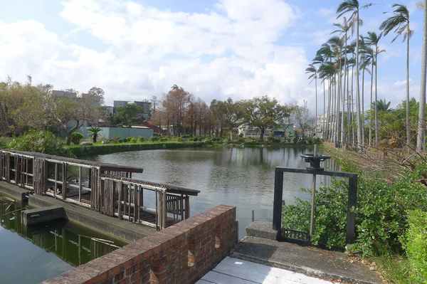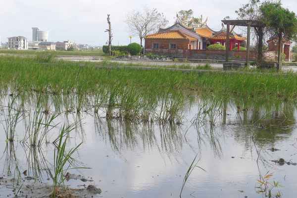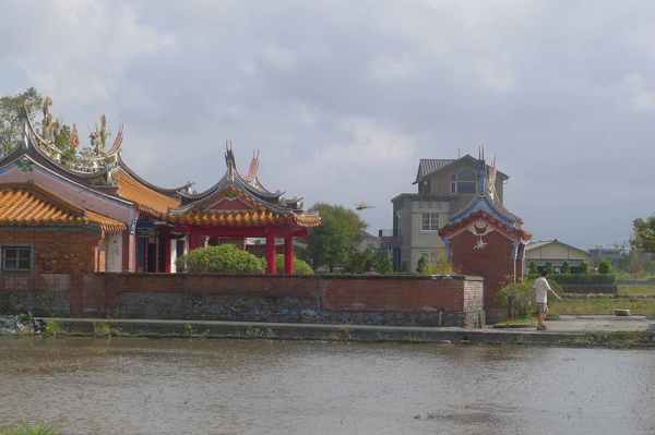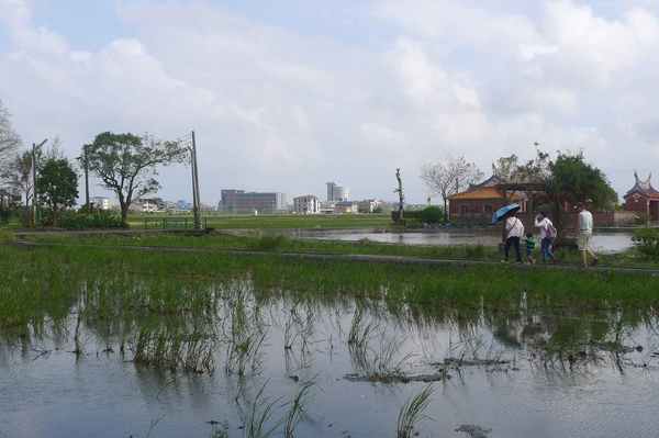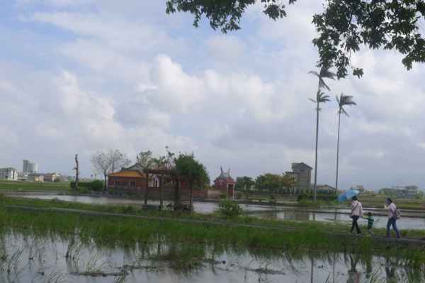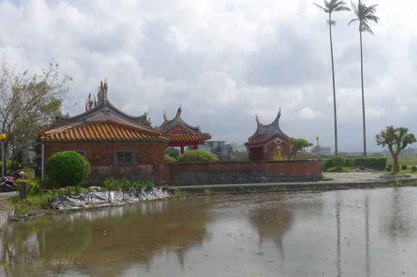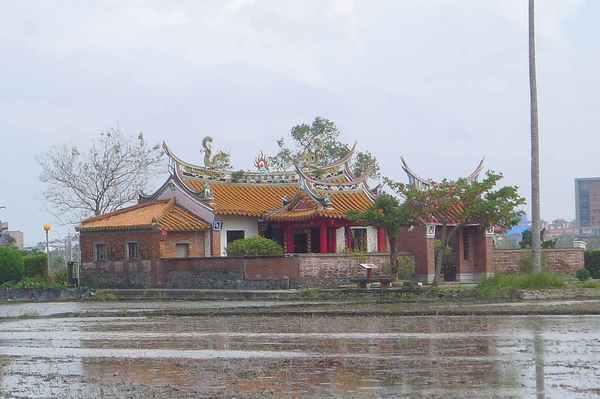 堂前則有一座半月形的埤塘,正是昔日陳家大宅前的池塘。