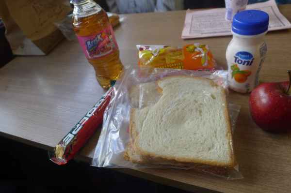 導遊讓每個人帶 一份午餐,在火車上趁觀景照景的空檔解決。