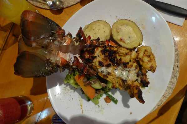 有些人添美金十元,把原定的魚排主菜,改成龍蝦尾。