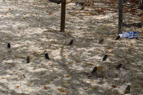 鳥們追著食物跑,但是遊客不能餵牠們,他們只有流口水的份。