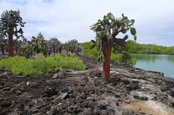 因此加拉巴哥陸鬣蜥主要是從當地的仙人掌(prickly-pear cactus)獲取水分,而仙人掌的果實、花、莖甚至尖刺,構成了這些鬣蜥80%的食物來源。只有在雨季時,牠們才能找到水池,並以一些齒莧屬(Portulaca)植物的花為食。