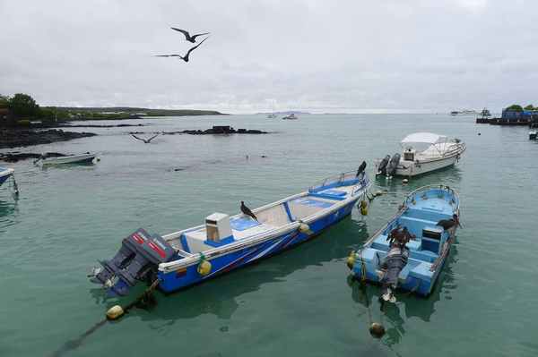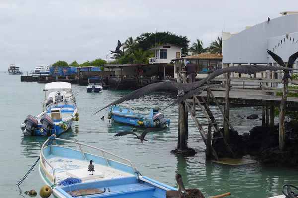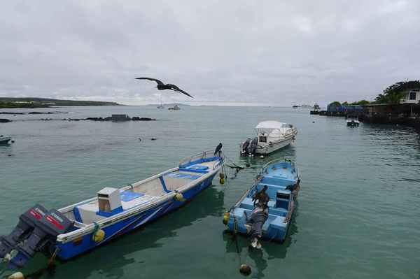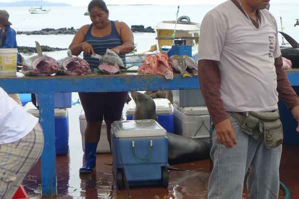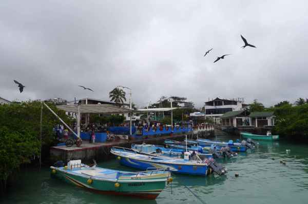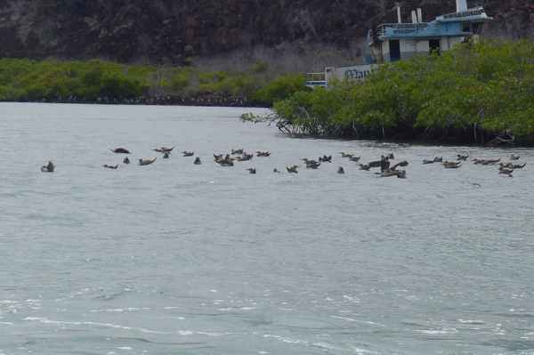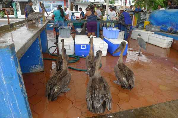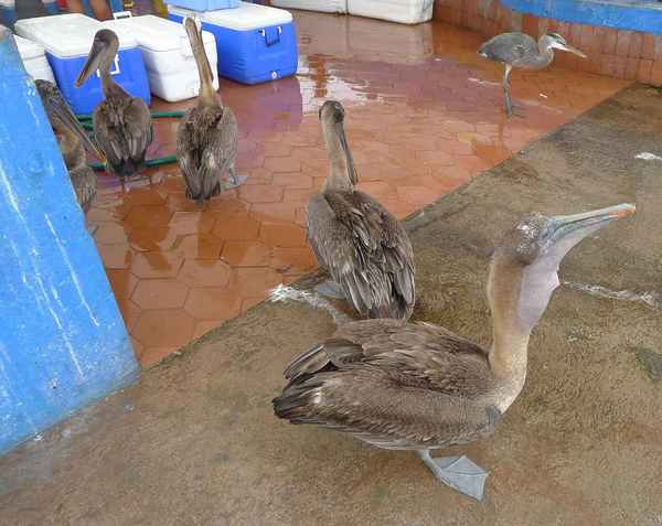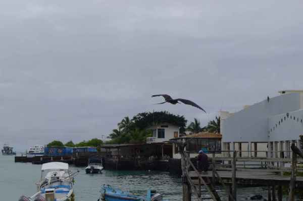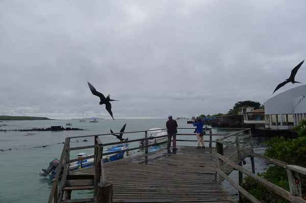 11/10清晨,臨別基拉巴哥群島之聖克魯茲島魚市場, 群鳥展英姿,一場精采的軍艦鳥秀,