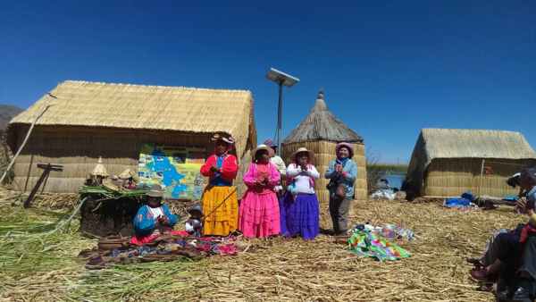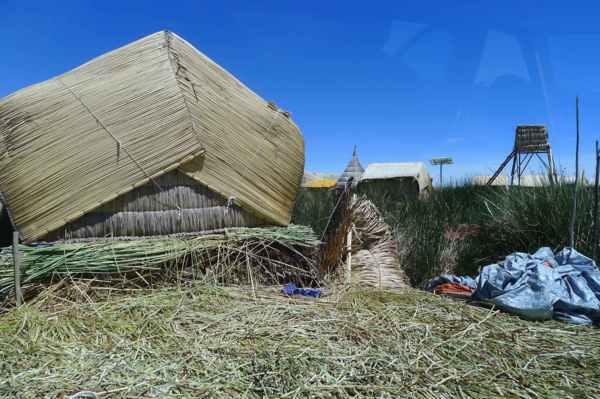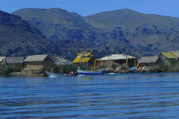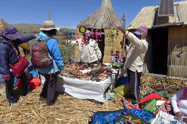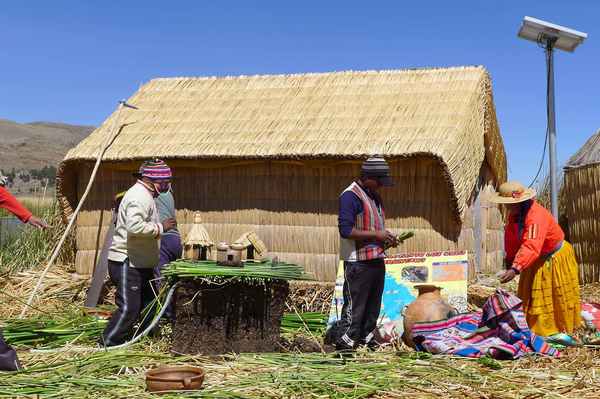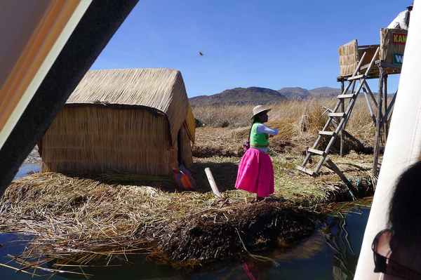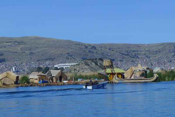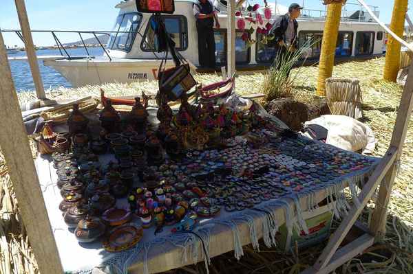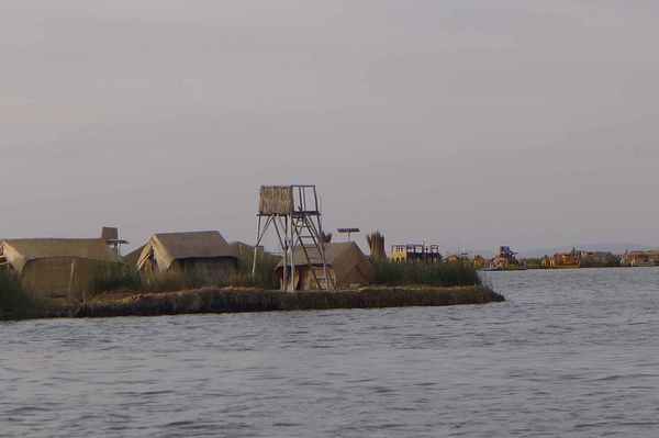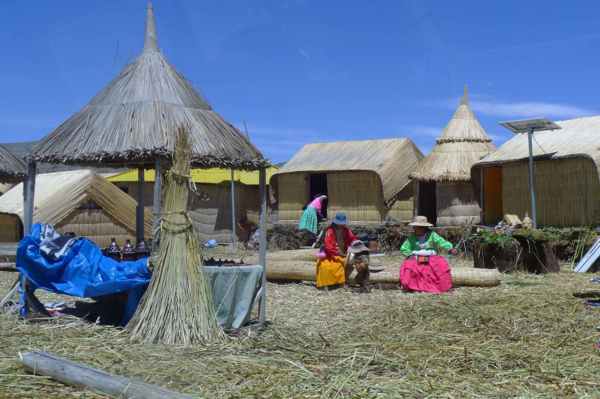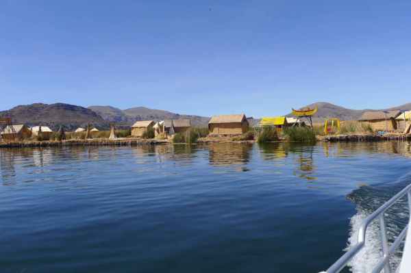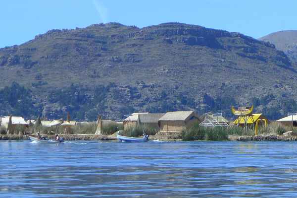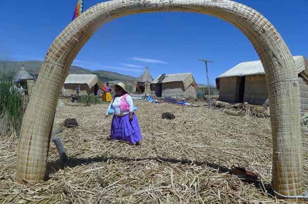 有數十座浮島位於的的喀喀湖,是為蘆葦草鋪成的人工島嶼。相傳1000年前,住在當地的原住民烏魯族為躲避印加人的侵略,而建造浮島使之與外界隔離。浮島約1.5公尺厚,面積多在60-100平方米不等,過去浮島隨水漂流,現今已改用錨使其固定於湖床。較大的浮島甚至可以蓋教堂、學校、商店…等 (維基百科資料)