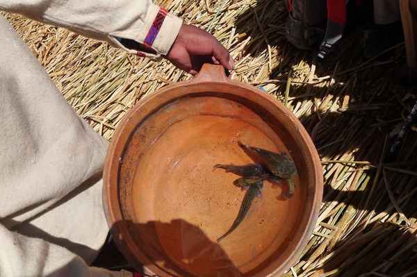 湖邊盛產高大的蘆葦,當地印第安人用蘆葦編制一種蘆葦船叫「淘淘拉」,只能使用一年左右時間就逐漸被水浸透而放棄。目前這種蘆葦船和浮島都成為吸引旅遊者的好觀光景點。