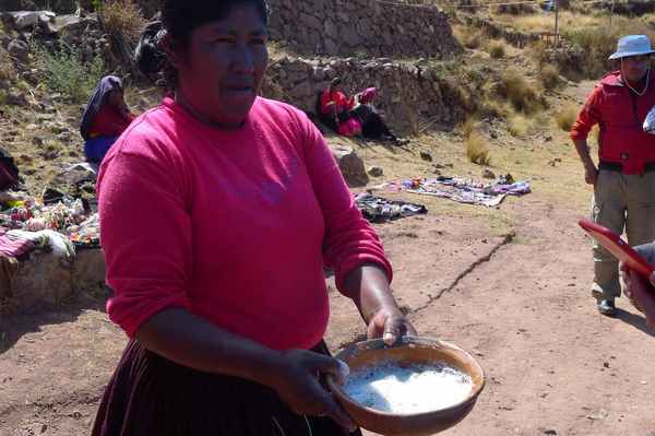 他和導遊互換自己布袋中的古柯葉,並當眾咀嚼。-這是他們的禮俗