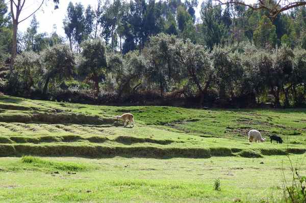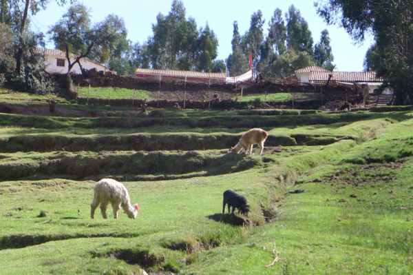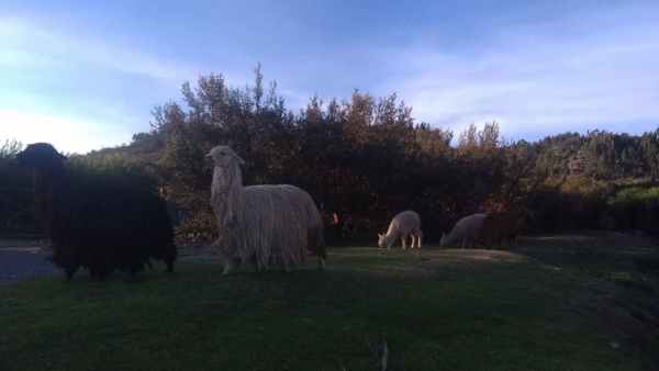 有人家、有羊駝,一兩處還有人牽著羊駝站在路邊,