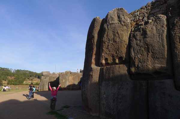 仔細觀察印加石砌工藝,特別是石塊以各種形狀組合在一起的方式。 留意地上的三個大型同心環。 這些圓環是堡壘主塔的基座。 考古學家認為庫斯科是以美洲獅的形狀建造,而薩克塞華曼屬於獅子的頭部。 牆壁被認為是獅子的牙齒。