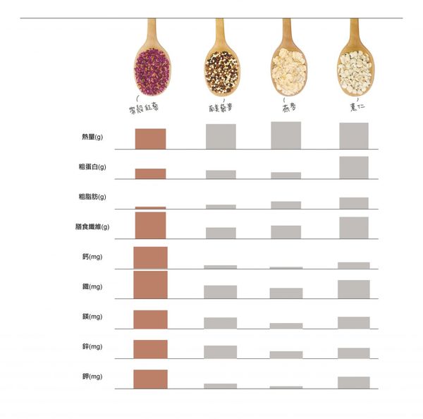 網路上紅藜廣告上的資料-藜麥燕麥等地比較表