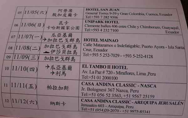 我們參加台達的祕魯、厄瓜多20日 首發團