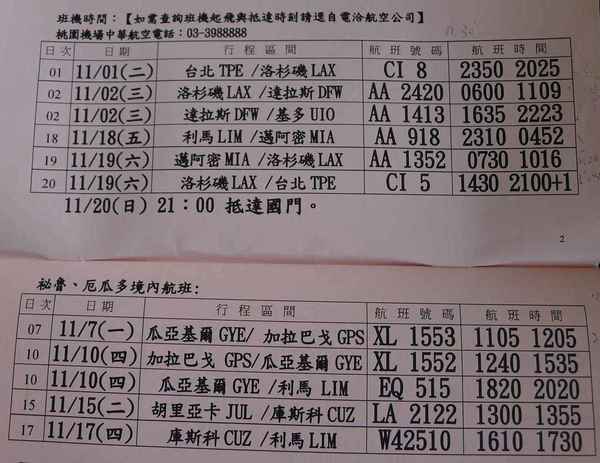 11/19-20利馬-邁阿密-洛杉磯-桃園