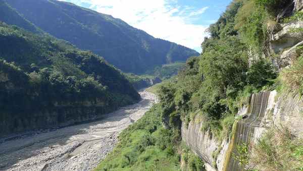 草嶺潭曾3度成為偃塞湖,目前枯水期,水很少。