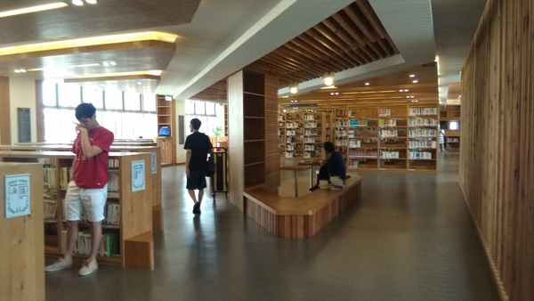 其內部空間規劃為地上四層、地下兩層,一樓右側是社區活動中心,左側為圖書館的閱報區、網路資訊區及服務櫃檯,二樓為期刊區及兒童室,三樓是書庫、參考室及地方文獻室,四樓為閱覽室及多功能教室,有265個座位,供民眾自修使用,總計1940坪。
