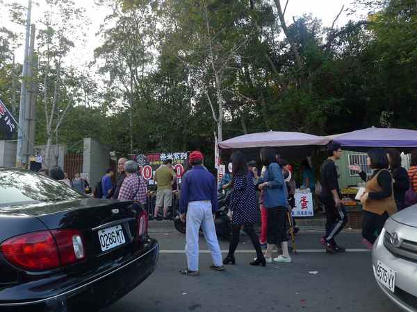 整條路上滿是攤販、遊人和車子