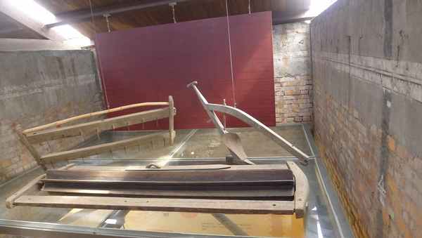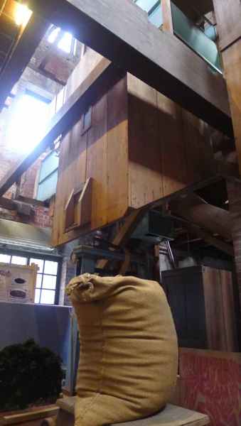 原儲穀倉庫1F中央輸送帶廊道,轉化成兼具展示與通道之功能。
