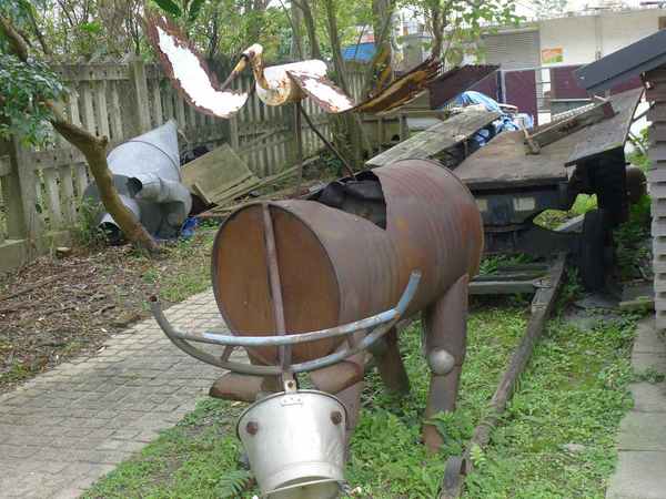 戶外空間除展示牛車、脫殼機等大型農具外,並搭配二結車站環境景觀打造一結鐵路車廂做為公共廁所。為此打造多功能文藝休閒園區。