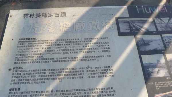 為1931年日治時期大日本製糖株式會社,因應虎尾溪河川改道威脅原有木構造五分鐵軌橋樑行車安全,及減少轉運人力成本,改建現有花梁鋼構造型之五分軌與七分軌共構之鐵橋,改建後的虎尾溪鐵橋,隱約浮現著五分小火車拖運甘蔗,有如河水湍流般的湧進虎尾糖廠,加速虎尾地方產業發展,是最具代表性的參觀景點。