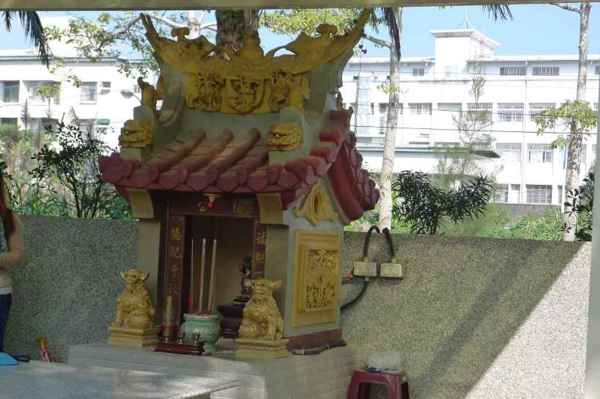 水池對面有土地公
