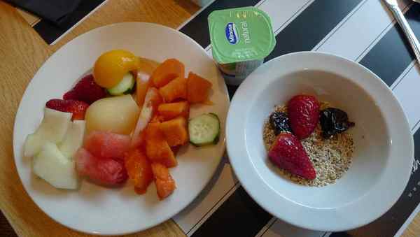 早餐水果種類多,還有我喜歡的芝麻、亞麻極奇摩籽。
