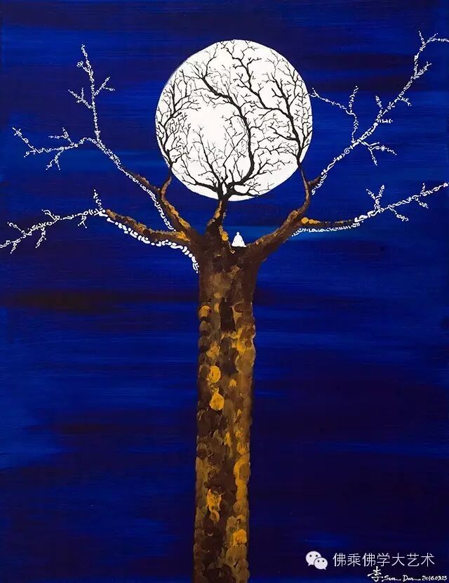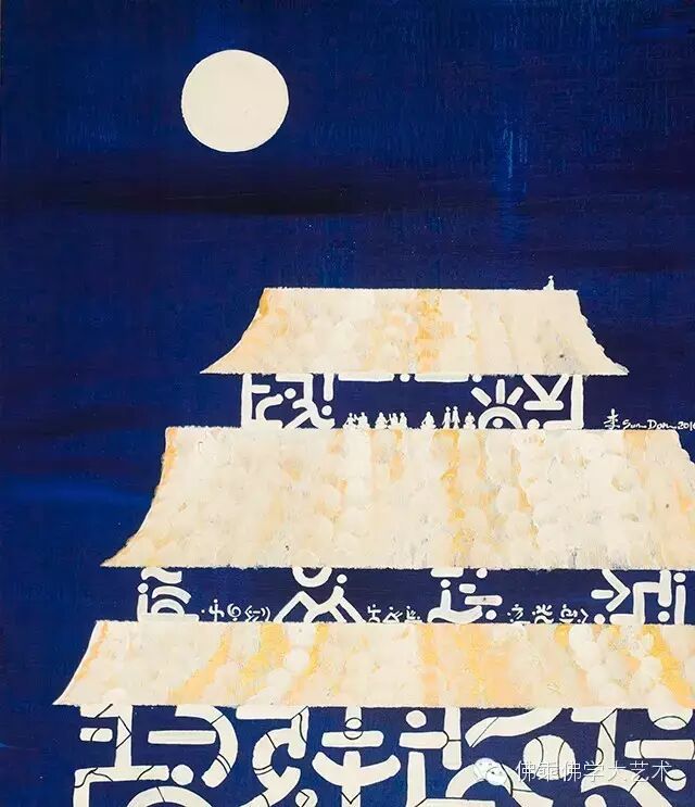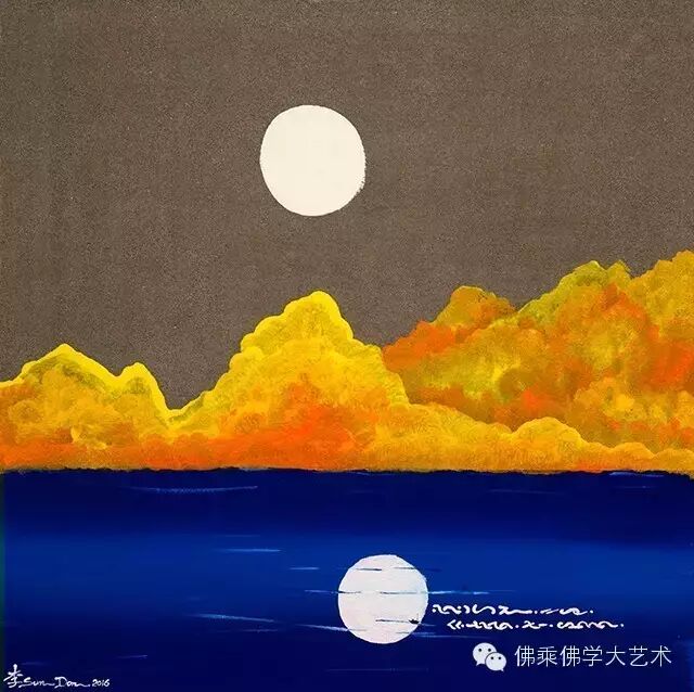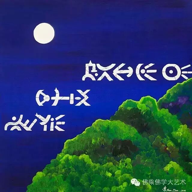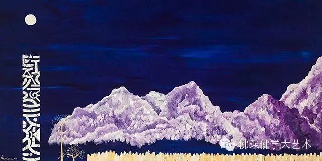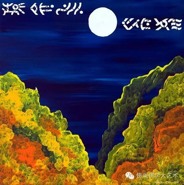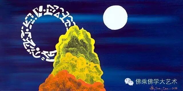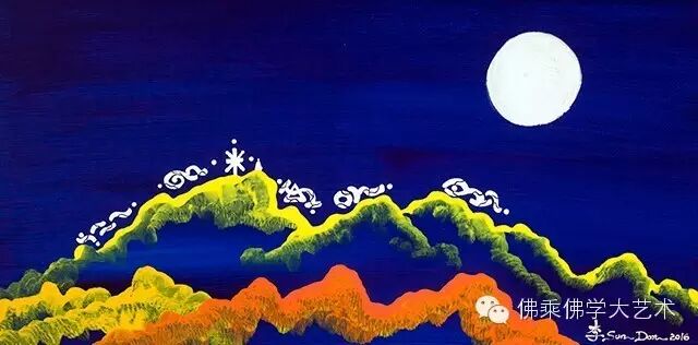 《掛月.塵外》系列主要是表達佛法並非刻板嚴肅,而是如同畫中世外山林呈現繽紛的色彩平易近人又蘊藏著無數驚喜。佛法如果能融入生活中,便可以發現許多佛性不可思議的微妙處,像是無量寶藏等待我們發掘。