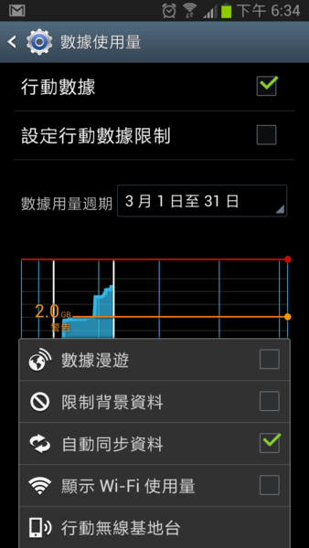 note2 開啟或關閉帳戶與同步處理的地方在那?