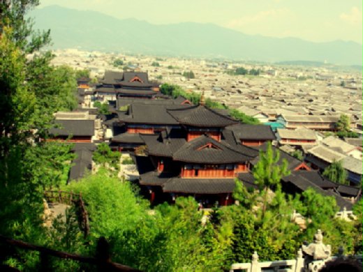 上圖為雲南麗江古城與木王府,