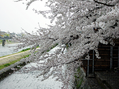 圖為鴨川畔櫻花開的樣子。