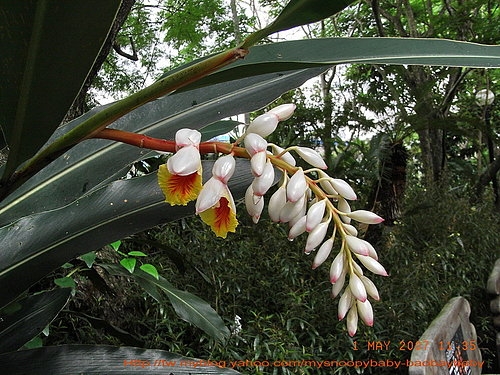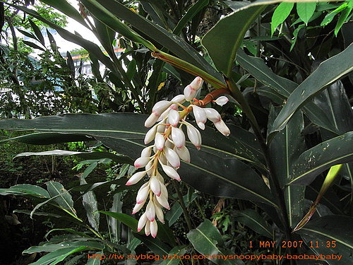 由花梗底部開始開花,整個花序下垂,白白的花苞上,點上那麼點紅尖ㄦ,煞是美麗!