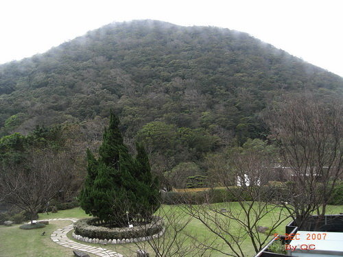 陣陣的細雨隨風飄落,間或夾帶著霧氣,從紗帽山的右方往左方吹過~