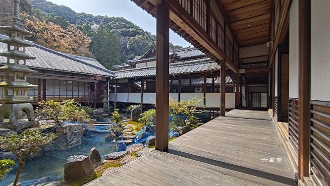 出僧堂後,沿著西單迴廊木棧板走至轉角處,眼前是開山堂,未開放不得進入,堂前合十默禱,來日有緣再見。根據官網云:開山堂內匾題「老梅庵」,緣 道元禪師喜梅樹故。堂內中央供奉一尊曹洞宗開祖 道元禪師坐像,此木雕身鑲玻璃眼的坐像屬鎌倉時代之造像,該坐像與真人大小相同,端坐在竹椅上,而 道元禪師的遺骨安放其內。此像原先由 道元禪師的弟子(である詮慧和尚)安置在永興庵,並受到晝夜供奉;後來移至建仁寺,但在 道元禪師圓寂500週年之際,再被移至興聖寺安奉。