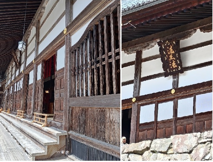 繼續起步,靠近制高點的法堂時,透過迴廊窗口仰望法堂匾額寫著「法王法」,那麼就在堂前木階梯上沿,端身正坐,靜觀現前,或松林聲,或遊客聲,或學僧打掃聲,或春日照撫,或寒風砭骨,或扣鐘集眾,或禪修法會梵唱,或人去後的自然聲景……,皆恭敬地納受七百八十個春秋所積聚的至極法樂。