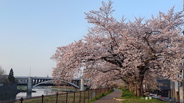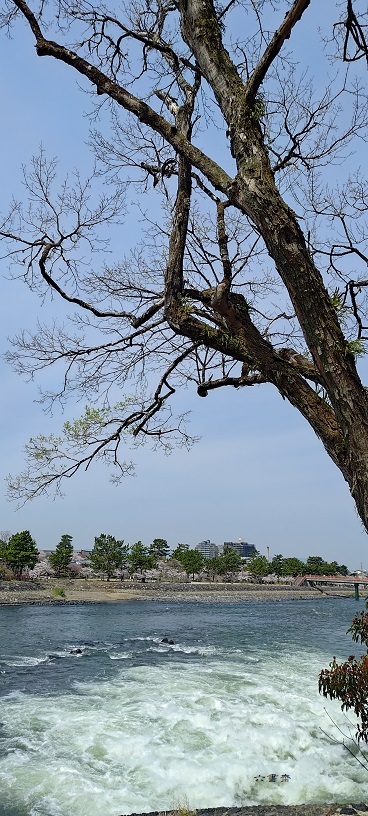第三天到福井再訪永平寺,這看似遠征的行程,實則一日一主題的行旅是從容的,因為有JR雷鳥號(サンダーバード,Thunderbird)等完善的大眾交通系統。此趟跨區選搭雷鳥號特急列車,由京都車站發車到敦賀站約一小時,再由敦賀站轉乘JR北陸新幹線抵福井,最後由福井站東出口的巴士轉運站搭往永平寺特急巴士,車程約30分鐘。於是,決定大地初醒明亮時出發,把握一小時的區間空檔,那麼就定向京都車站往鴨川畔采風去,約十分鐘後走上鴨川堤防,見這般唯美景色,驚喜萬分也讚嘆不已呢!就此駐足賞景,一個人獨享半小時的人間繁花盛情,甚幸!