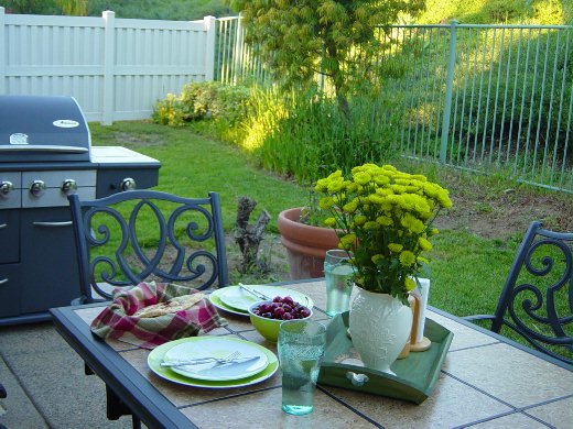 今天的San Diego依舊陽光普照, 是個在後院BBQ的好日子! 在加州,很多人的後院都會放置一台BBQ烤台(甚至在後院搭建一座戶外烤肉廚房), 想吃烤肉的時候就可以馬上行動, 非常方便. 我和Gary都是吃素的人, 所以, 通常都是烤一些像茄子. 磨菇. 小南瓜. 蘆筍等蔬菜, 比較豪華一點就是再加上像素熱狗.素雞肉及豆腐等豆類製品. 無非就是要享受戶外用餐的優閒....