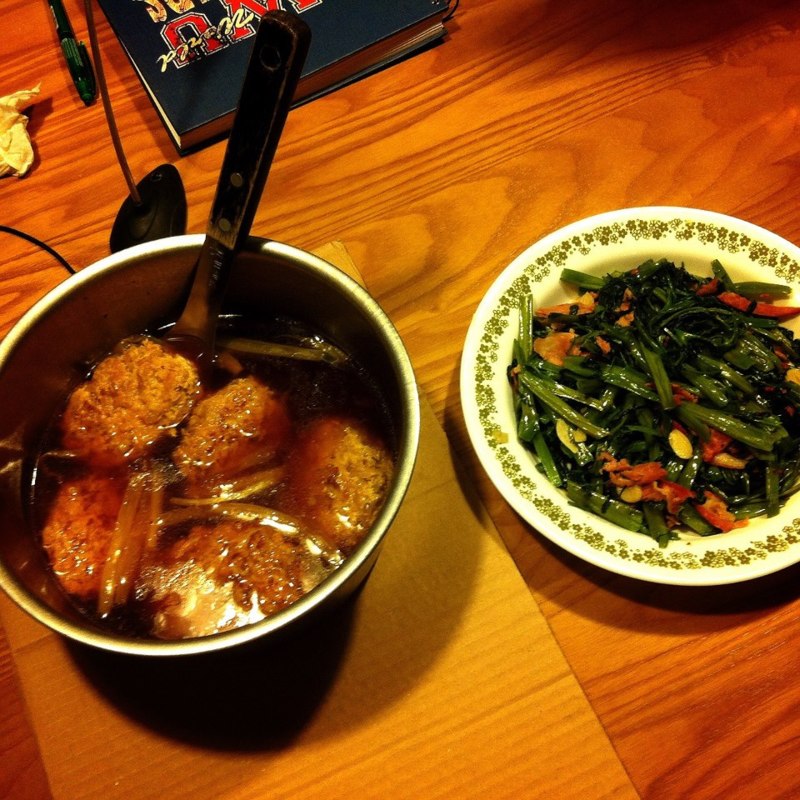 之前的小套房只有電鍋,所以丸子都只能用蒸的,也失去了獅子頭焦香的口感,好不容易有了廚房!!!潘阿克又點名想吃獅子頭~GO~!