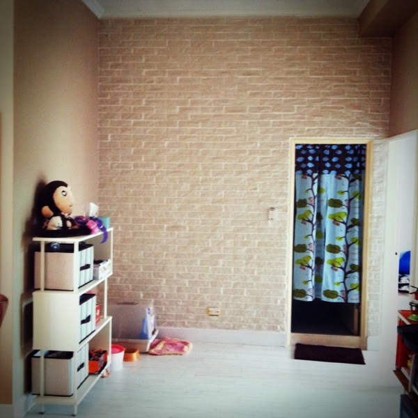 將家中最小的房間跟客廳的隔牆打掉,是我們這次唯一打牆的工程,這間房間本身為房中房,外面就是後陽台,採光通風都比較差。