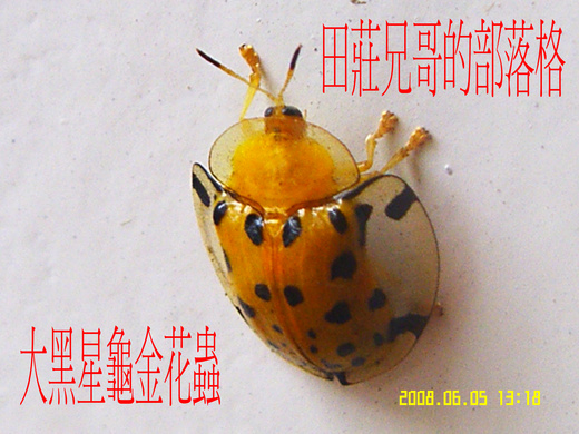 鞘翅目:金花蟲科 龜金花蟲亞科 中文名:大黑星龜金花蟲