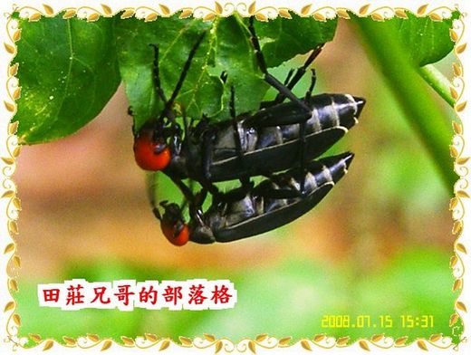 圖下:這種的愛愛姿勢.我真的佩服那隻雄的.牠六足全然沒有接觸到東西.謹靠著牠的生殖器與雌性連在一起而已...實在有夠猛...