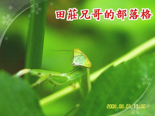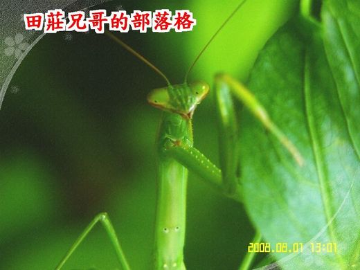 很可愛喔!牠可會"螳螂拳"耶!.....被打到很痛.......... 田莊兄哥 於 2008/08/07 23:54回覆