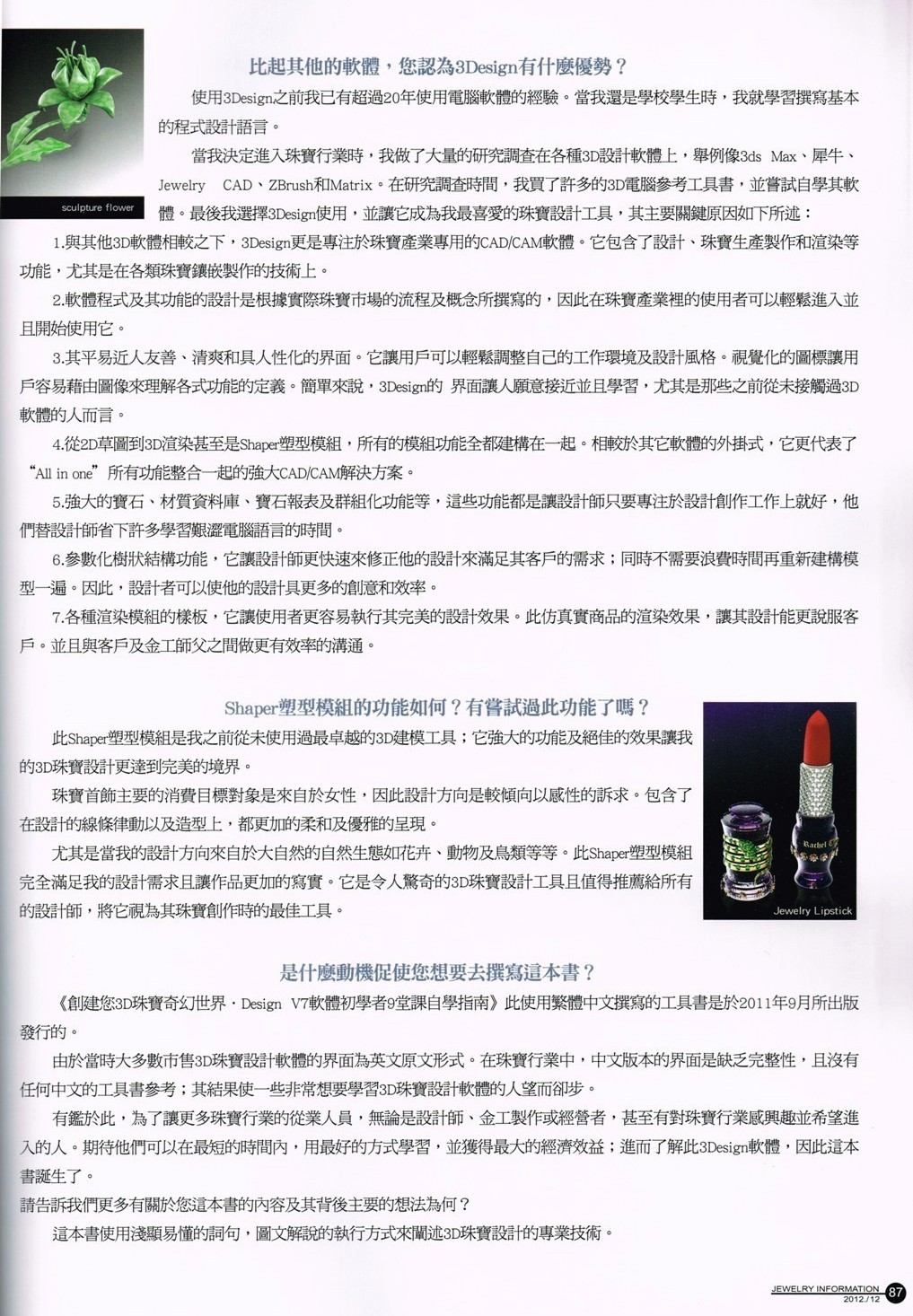 陳佩宣 Rachel Chen 人物專訪 (刊載於珠寶商情雜誌2012年12月)