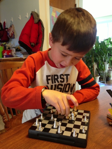 瑞恩對足球及對樂高積木的喜愛,可以玩再多小時也不厭倦,也是一種熱情.他的新遊戲是下棋,幾乎每天都要下一盤,我也因此學了基本規則,才能偶而充當他的棋伴.